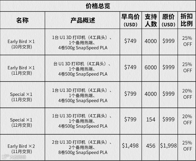 - 本次众筹产品:彩色3D打印机(Snapmaker U1)