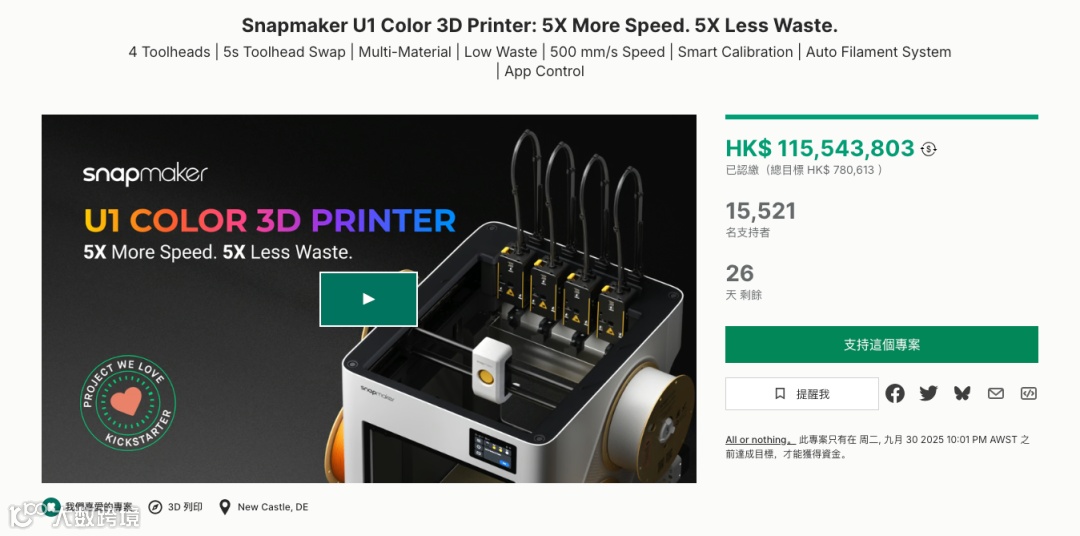 Snapmaker U1彩色3D打印机在Kickstarter平台上线后迅速引爆市场,累计筹款达1480万美元,吸引超1.5万名支持者,刷新桌面级3D打印机众筹纪录。这一成绩不仅体现产品力的突破,更是一次技术、用户洞察与全链路营销协同的成功实践。