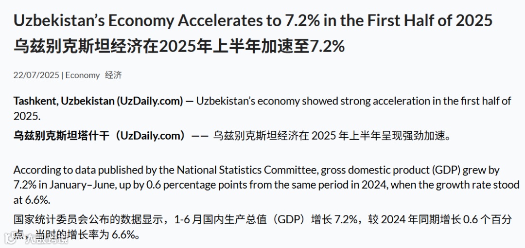 根据乌兹别克斯坦国家统计局最新数据,2024年该国对外进口总额达555亿美元,同比增长51%。中国以161.7亿美元的出口额位居乌国第一大进口来源国,俄罗斯以124.5亿美元位列第二。在经济增速方面,乌兹别克斯坦2025年上半年GDP增速达7.2%,首次超过哈萨克斯坦的6.2%,成为中亚增长最快经济体。