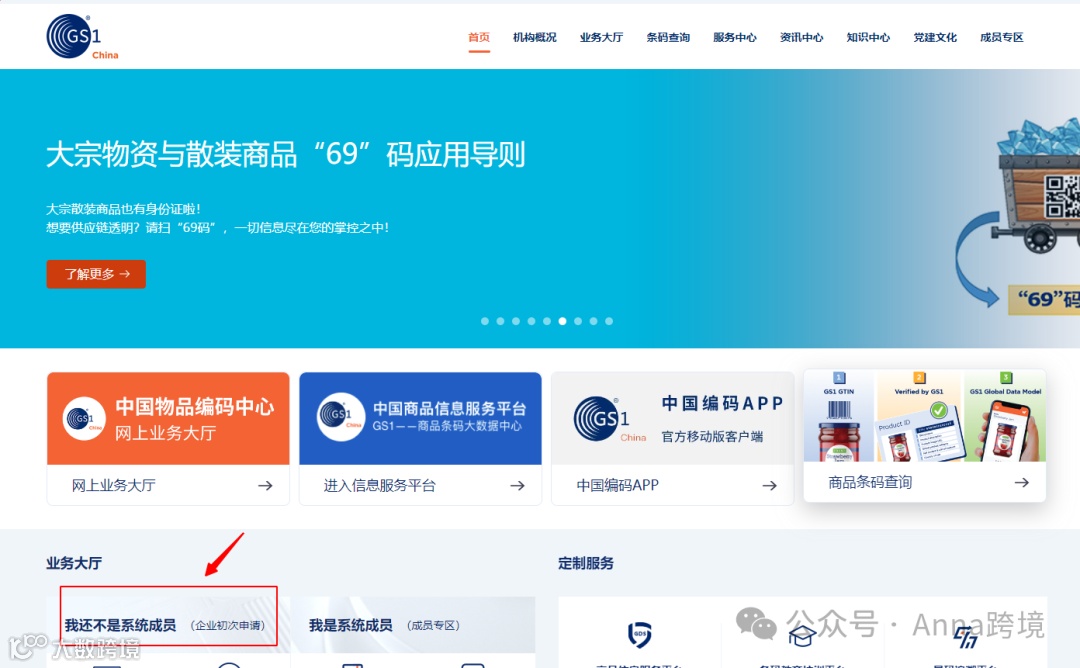选择首页--业务大厅--“我要申请商品条码”--我不是系统成员,申请公司注册信息。