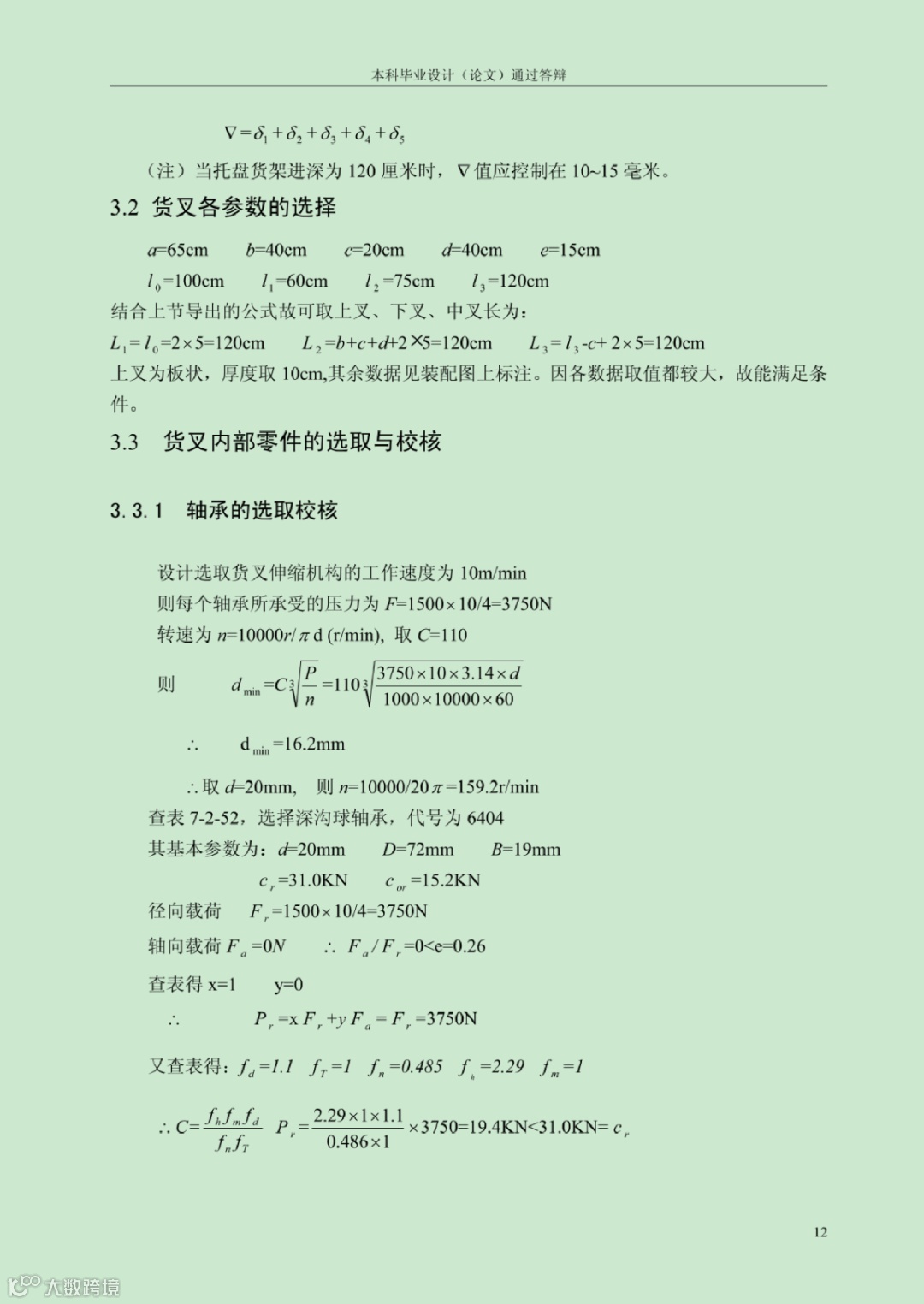 合理选取货叉长度、材料与截面尺寸,并对轴承、链轮、链条等关键零部件进行选型与寿命校核,保障机构长期稳定运行。