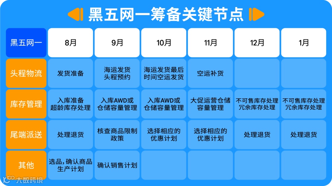 为保障Prime大促销日及黑五网一活动顺利参与,务必按以下时间节点完成备货: