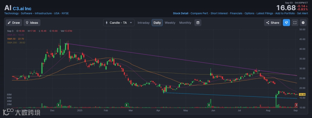 3. C3.ai(AI)公布2026财年一季度业绩:营收7030万美元,其中订阅收入占比86%。GAAP毛利率为38%。公司已重组销售与服务团队,并任命新CEO。预计第二季度营收将在7200万至8000万美元之间。