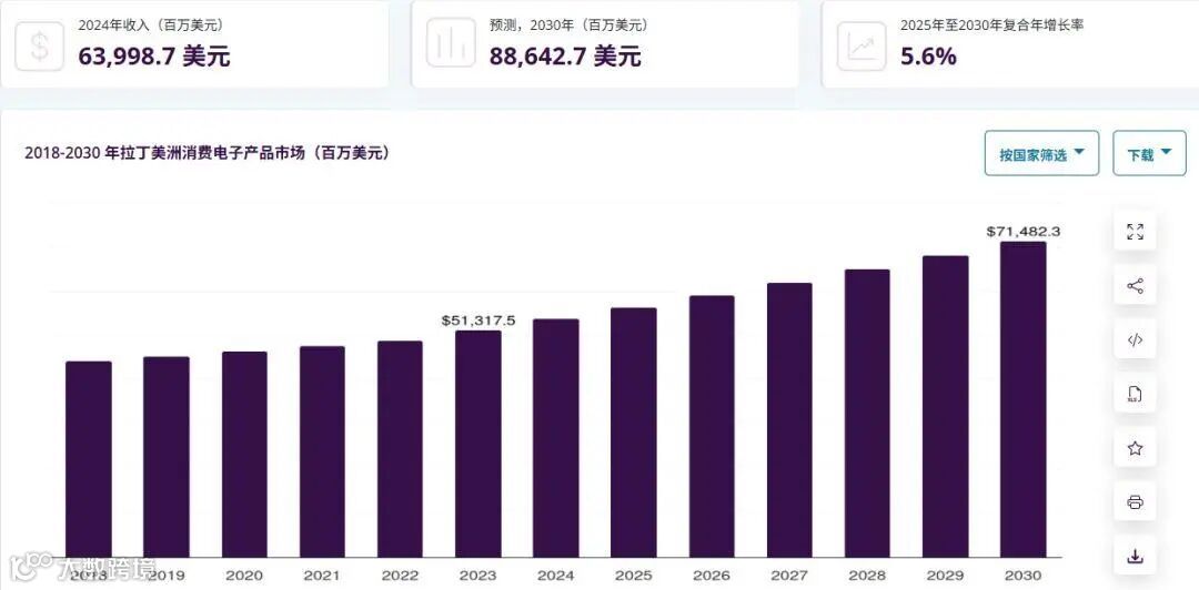当字节跳动旗下TikTokShop在巴西单月GMV突破10亿雷亚尔,当Shein在墨西哥开设首座本地化仓储中心、实现3日达配送服务,这些鲜活案例印证着一个事实:拉美市场已从“潜在机遇区”转变为“现实增长极”。2024年拉美地区电商交易额突破1.2万亿美元,年增速达18.7%,远超全球平均水平;新能源汽车渗透率从2020年的1.2%飙升至2024年的8.9%,市场规模预计2030年突破500亿美元。这片拥有6.5亿人口、34个经济体的大陆,正以多元需求、政策红利与增长韧性,成为全球企业战略布局的必选项。