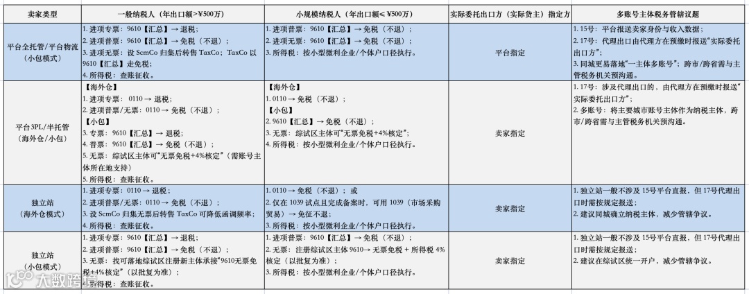- 一般纳税人平台卖家应优先采用有票退免税模式,控制所得税成本;