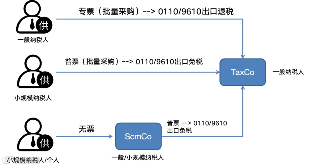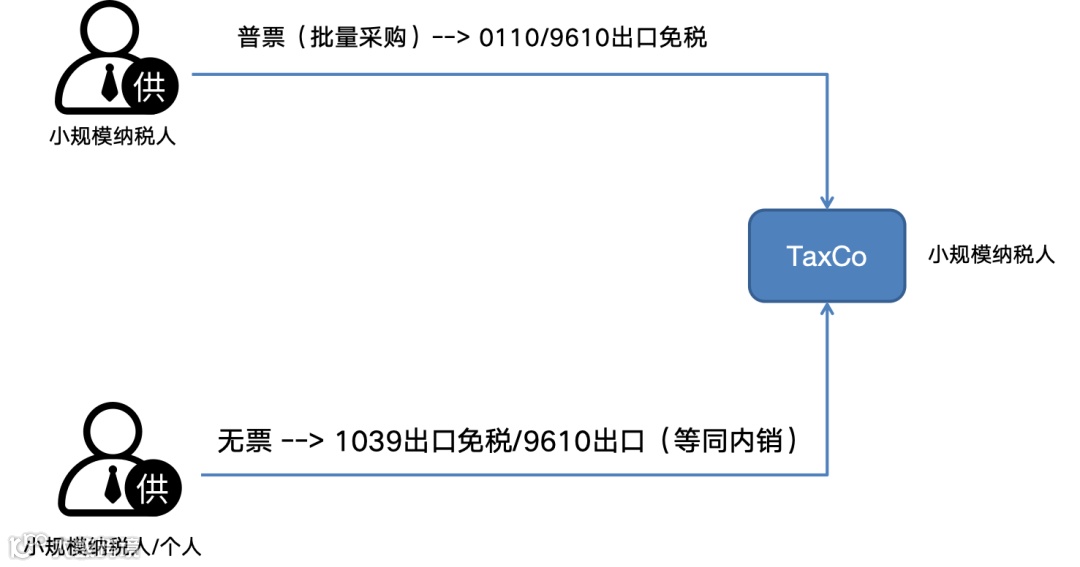 - 可取得普票的采购,由供应商直接供货给TaxCo,申请出口免税;