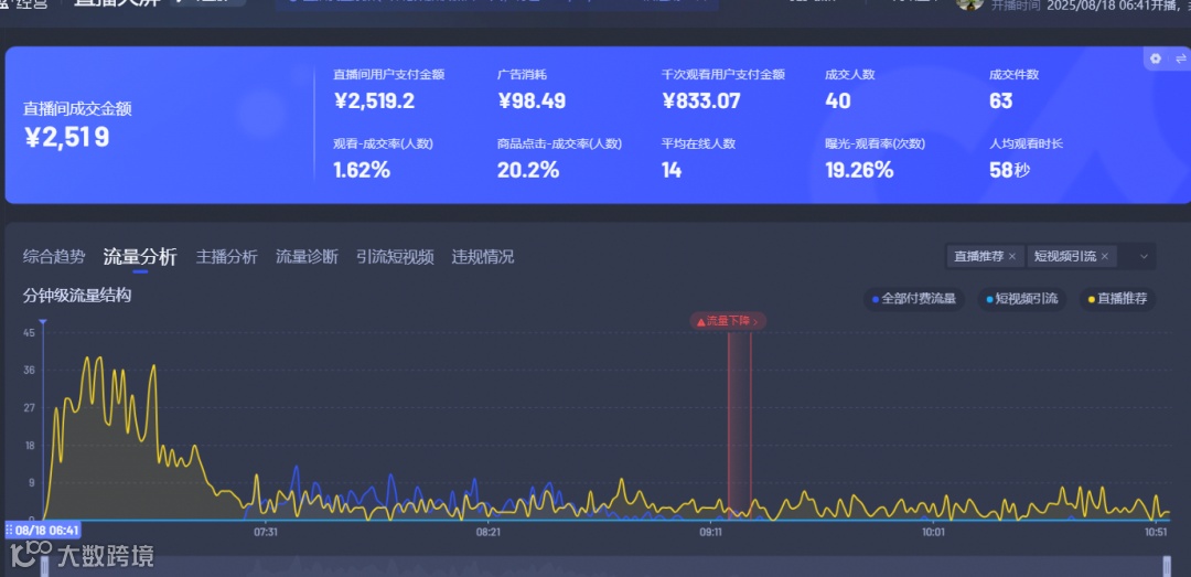 数据显示:该直播间转化能力强,但入口吸引力不足。只要提升点击率与初期留存,业绩有望实现倍增。