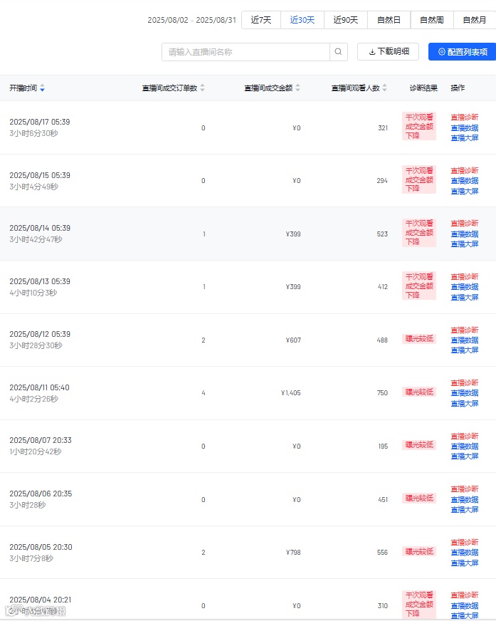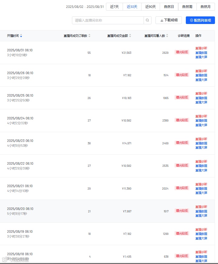 数据显示,直播间已进入稳定运营阶段。进一步拆解单场数据: