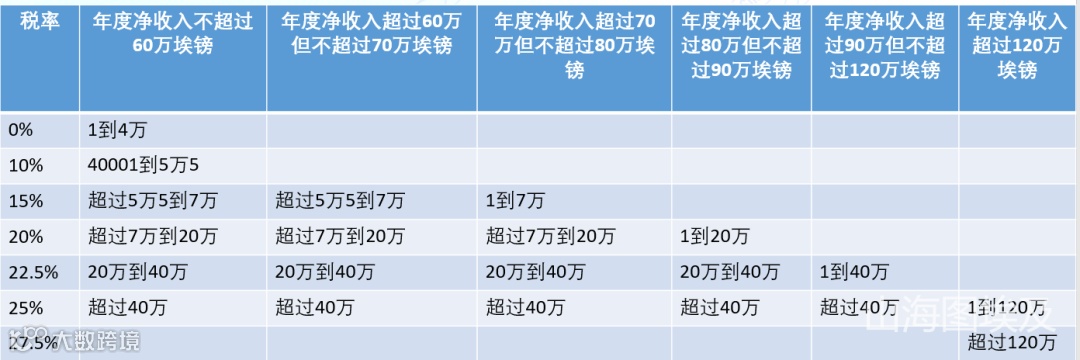 ▲埃及个人所得税税率(居民工资薪金所得适用)
