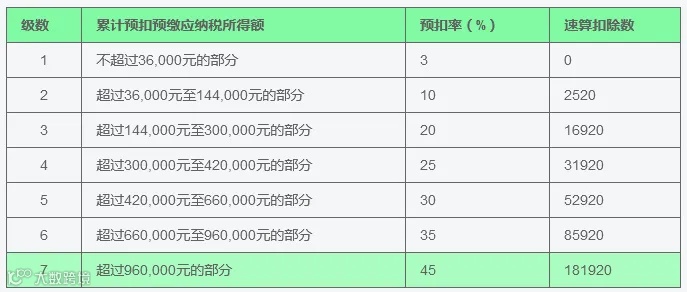 ▲中国个人所得税预扣率(居民工资薪金所得适用)