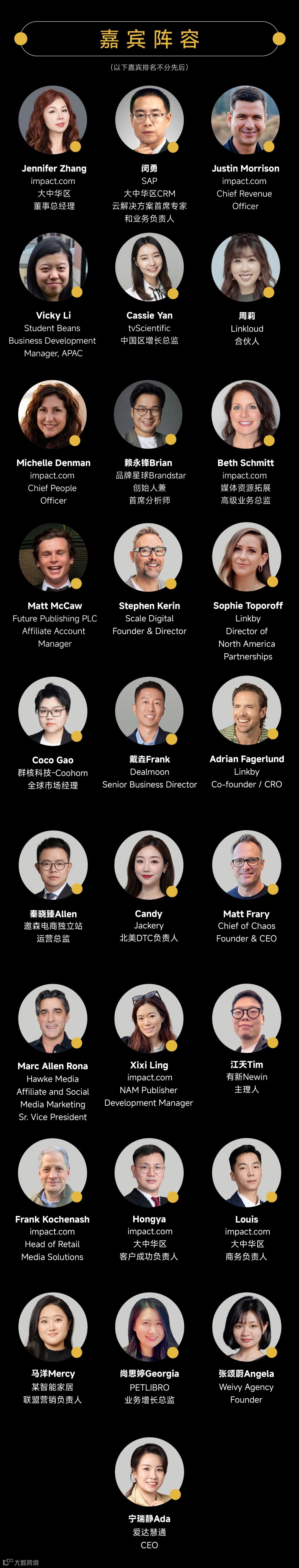 impact.com在全球16个国家设有21个办公室,大中华区总部位于上海,已服务TikTok Shop、CapCut、Banggood、AliExpress、PatPat等众多全球化品牌,持续打造开放、透明、高效的全球合作生态。