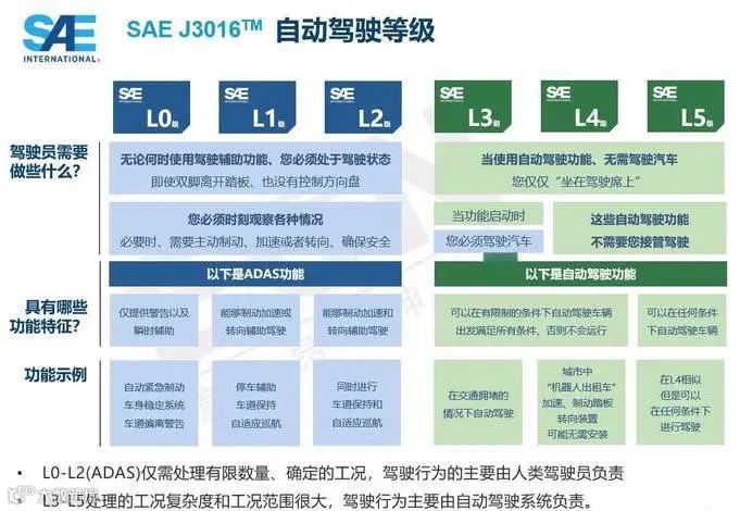 SAE将自动驾驶技术划分L0-L5六个等级