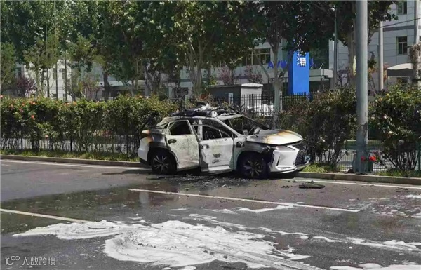 小马智行无人驾驶车撞上绿化带起火
