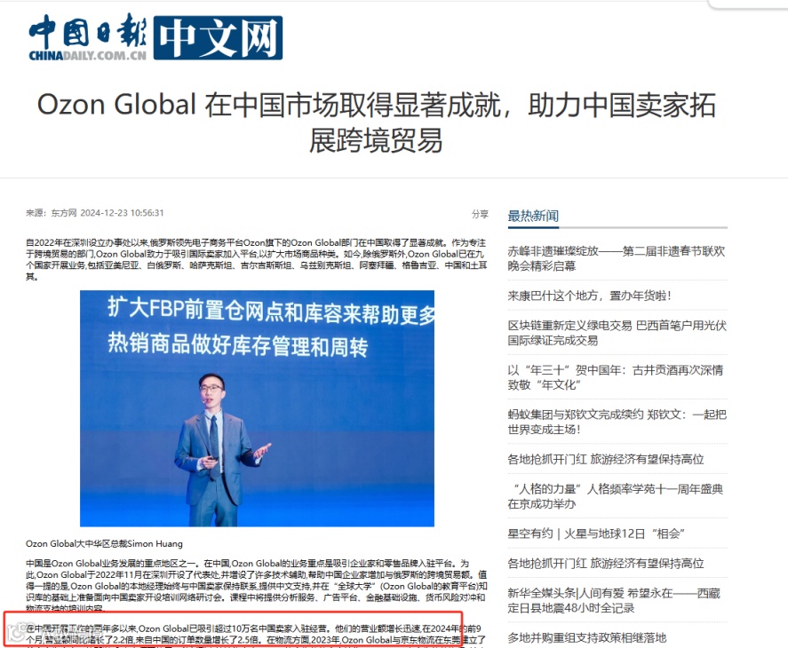 数据显示,俄罗斯主流电商平台Ozon上中国卖家已超10万家。2024年前9个月,中国卖家营业额同比增长2.2倍,订单量增长2.5倍,跨境电商业务爆发式增长直接带动物流需求攀升。