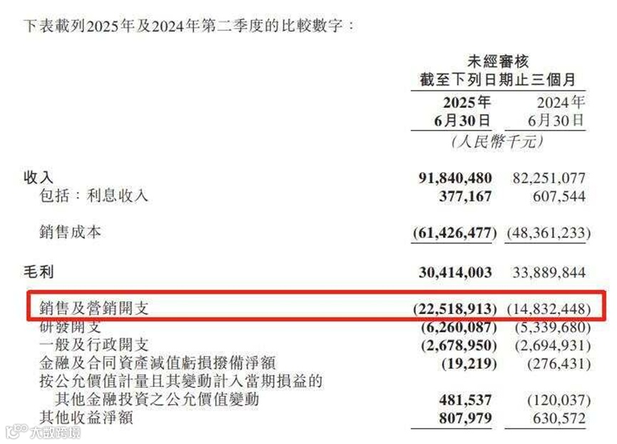 利润大幅下滑,主因是“非理性竞争”带来的高额支出。财报指出,销售成本同比上升27%至614亿元,主要来自配送订单增长、骑手补贴提升及新业务扩张。销售及营销开支更是激增51.8%至225亿元,用于应对激烈的外卖与即时零售竞争。