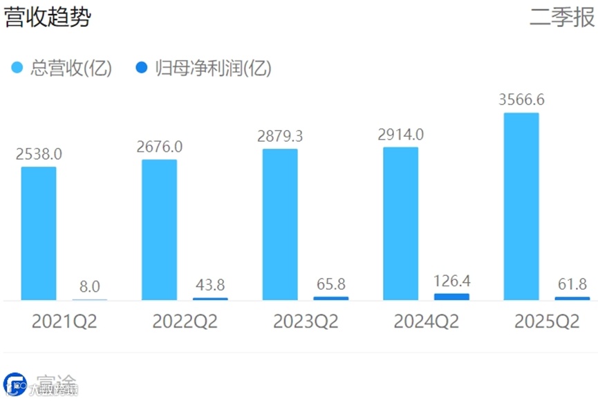京东在第二季度总营收达3567亿元,同比增长22.4%,创下近三年增速新高。但净利润为62亿元,同比下降51%。