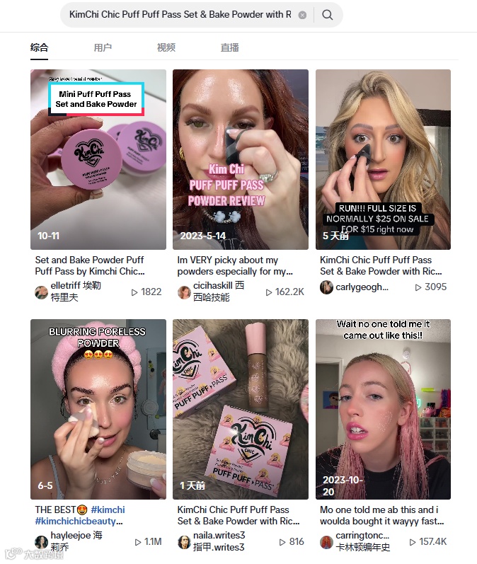 通过搜索商品名字可以看到产品的推广视频,从去年至今,仍有大量达人测品,且播放量都不低。