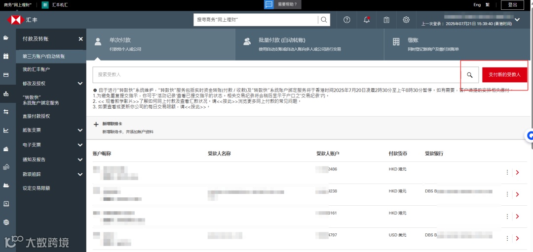 ➤ 路径:主页 → 付款或转账 → 新增受款人