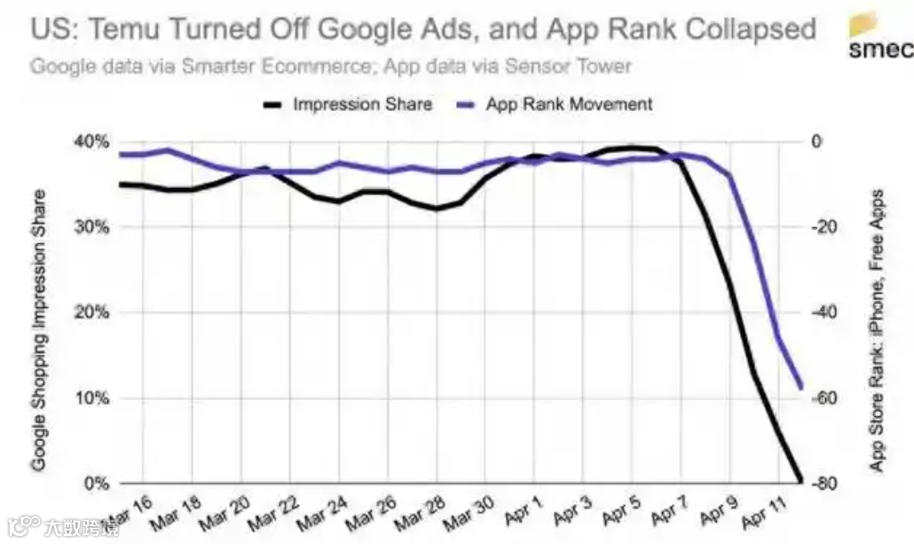 2025年4月,美国宣布对中国商品加征145%关税,并取消800美元以下小包免税政策,Temu全托管模式一度停摆。广告投放骤减,App Store排名跌至第58位。