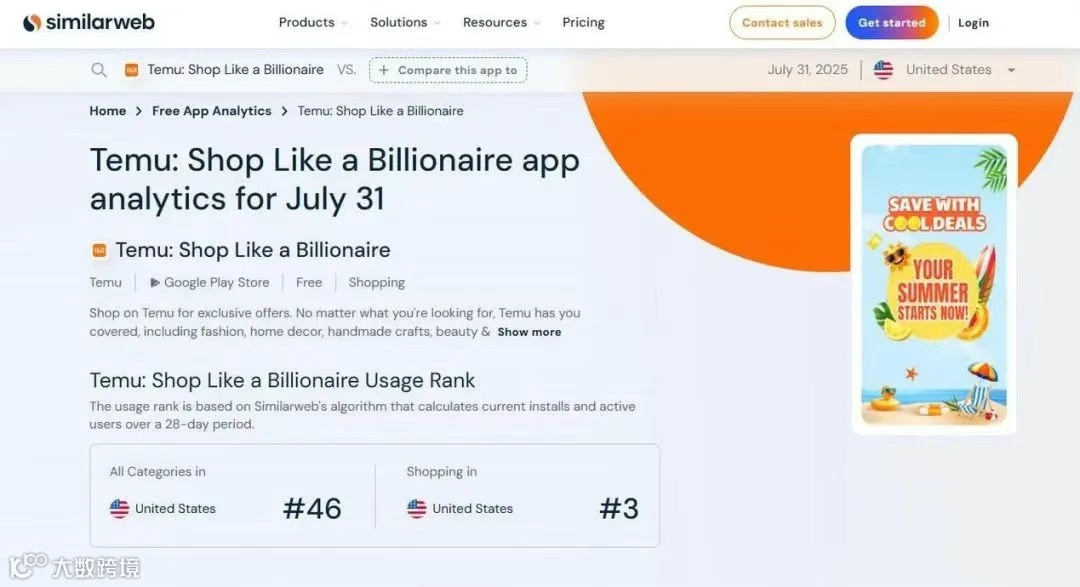 截至7月25日,Temu重回美国购物应用排行榜前列:谷歌榜第三,苹果榜第四。