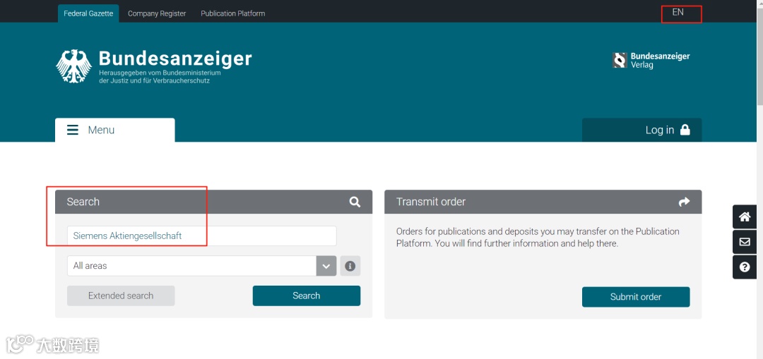 进入“Normal search”,在“Company name”栏输入公司全称,建议包含法律形式(如Aktiengesellschaft),以减少同名干扰。