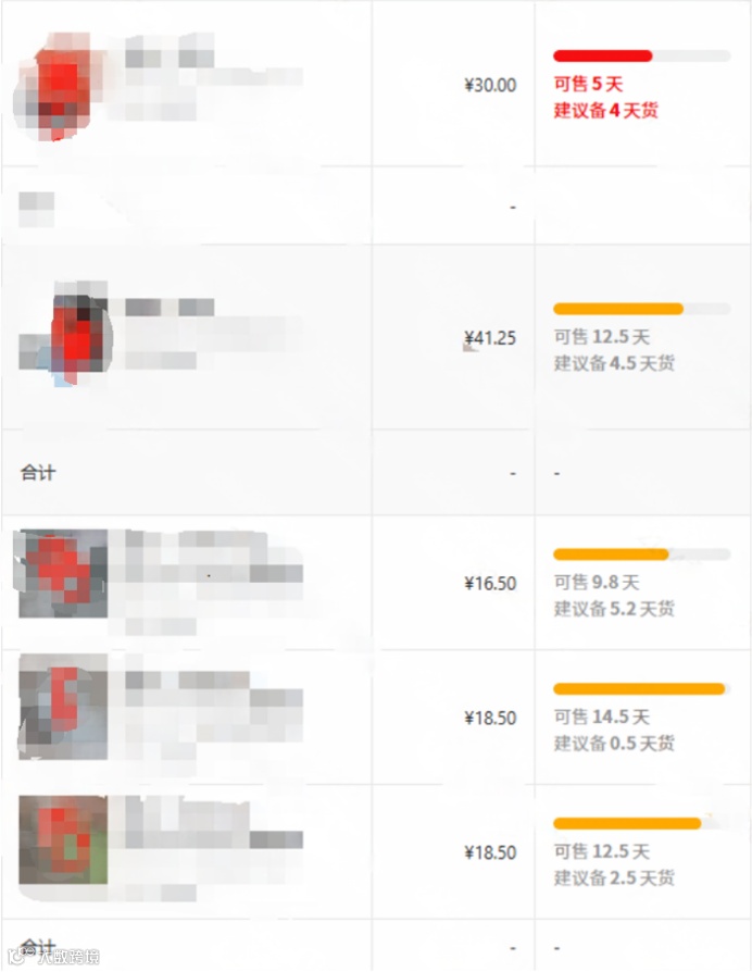 Temu已上线库存水位图功能,通过浮动条直观展示各链接可售天数,并以橙色、红色标识库存预警状态。相比传统数字显示,图表化呈现更便于快速识别风险,建议卖家充分利用该工具进行库存监控。