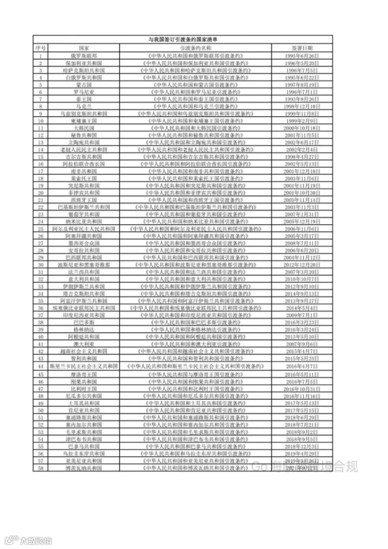 中国已签署引渡条约的国家清单