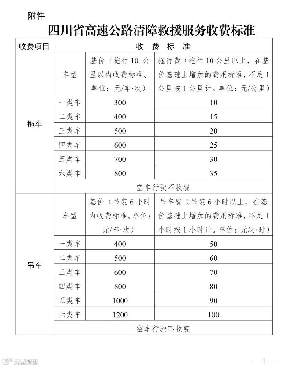 四川省发改委、交通运输厅联合发布通知,自2025年9月1日起执行新的高速公路清障救援收费标准。拖车服务10公里内按基价收费,超10公里部分加收拖行费;吊车服务6小时内按基价收费,超6小时加收吊装费。