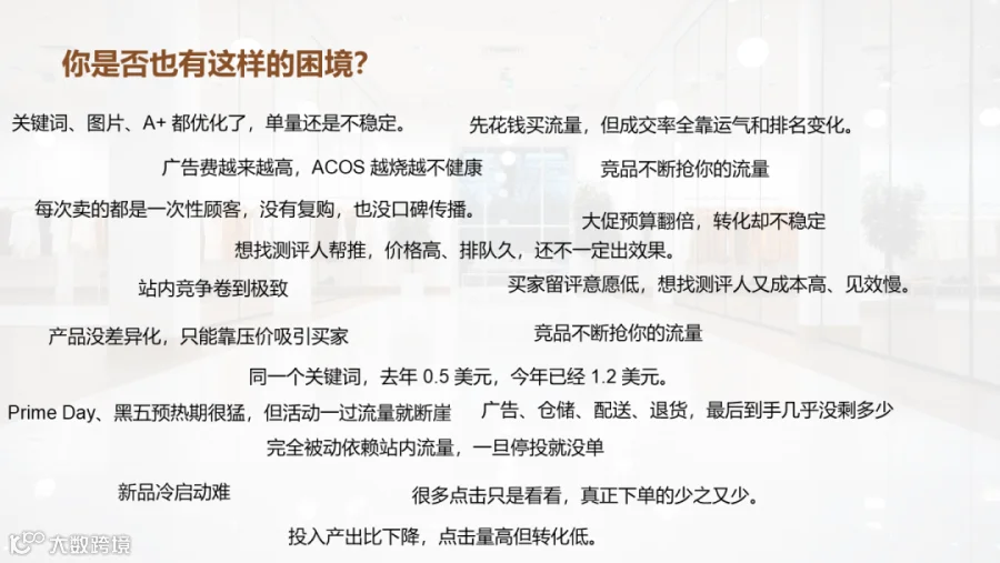“关键词优化了,图片也换了好几轮,A+ 做到极致,可单量依然不稳。”