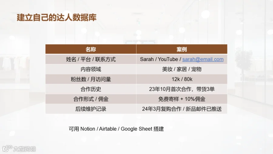 数据库的目的是提升合作效率,这里的数据库是给大家举个简单的例子,可以根据实际情况去补充夯实数据库资源。
