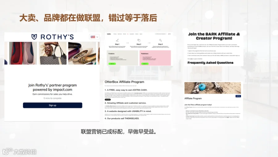 所以,如果你总是等“品牌起来了再做联盟”,基本等于放弃了先机。