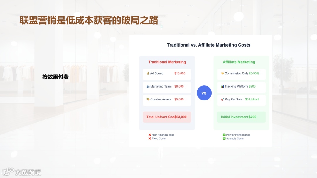 “联盟营销的核心逻辑其实非常简单:按效果付费,即按成交才付钱。”