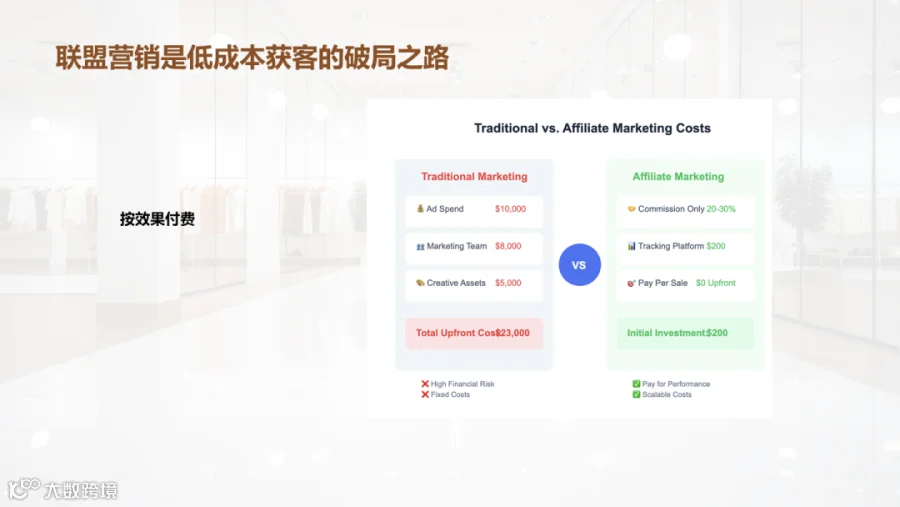 在成本结构上,联盟是“成交了才付佣金”,广告是“先花钱买点击或曝光”;