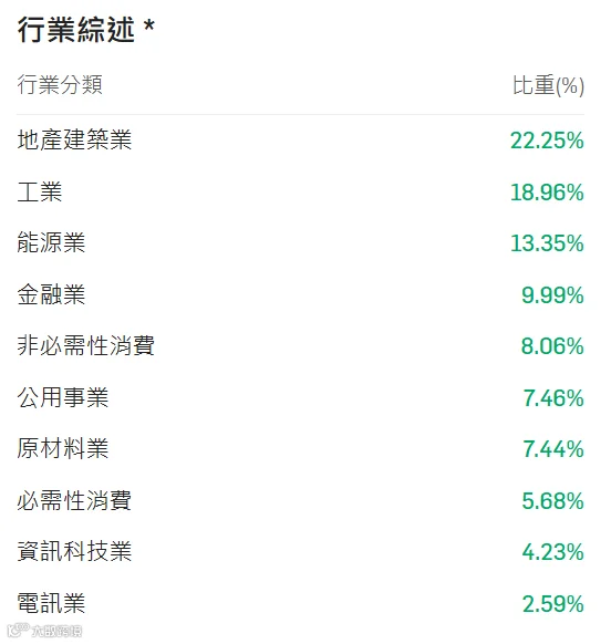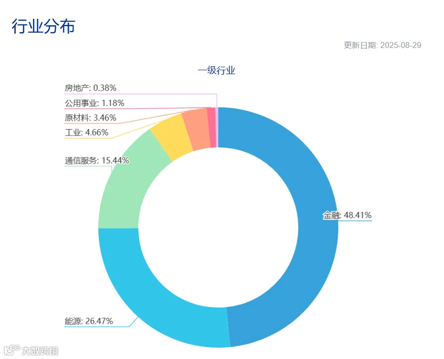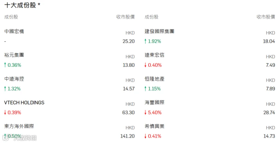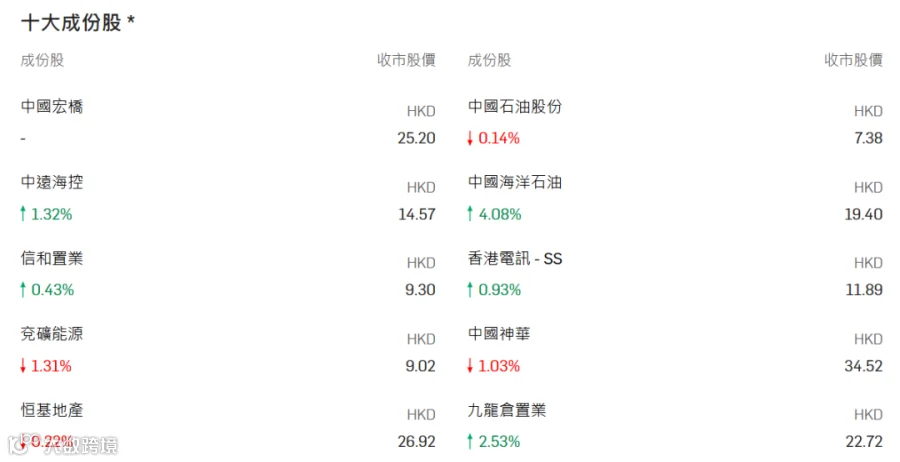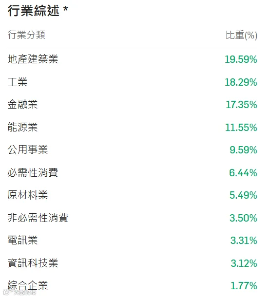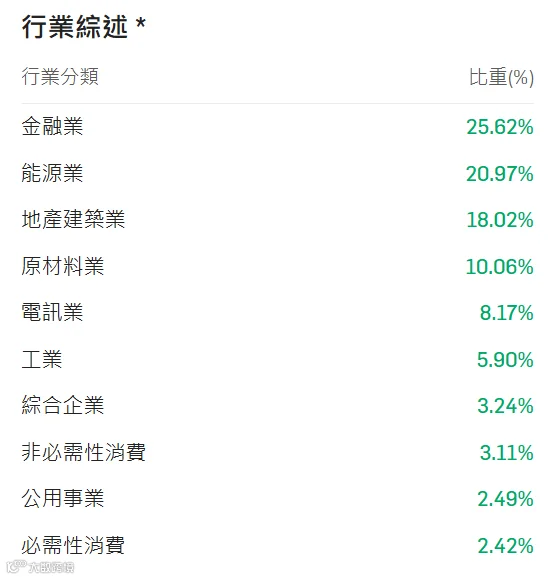 该基金成立于2013年6月17日,由Global X管理,当前规模约38.5亿港元,跟踪恒生高股息率指数。 选股规则包括: - 成分为恒生综合指数大中型股; - 连续三年派息; - 剔除波动率最高25%及过去一年股价下跌超50%或表现最差10%的股票; - 按净股息率排名选取前50只,采用净股息率加权,单一个股权重上限10%。 行业分布以地产、工业、金融、能源和公用事业为主,整体较为均衡。