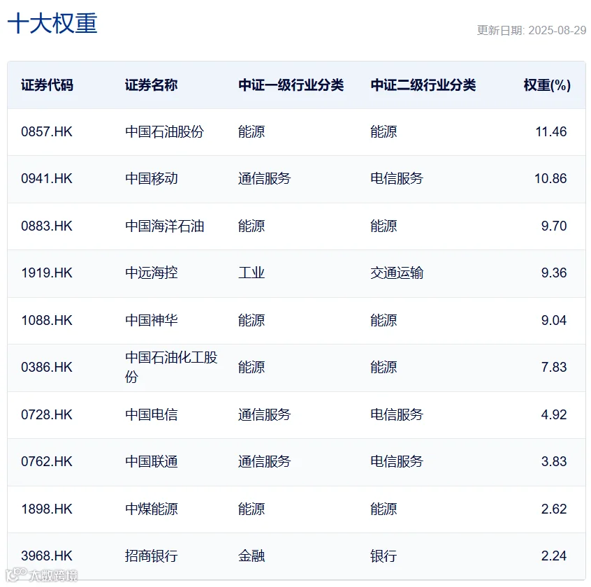 2024年7月10日上市,由博时(国际)管理,规模约4.11亿港元,跟踪中证国新港股通央企红利指数。 选股逻辑: - 聚焦国资委旗下港股通高股息央企; - 满足流动性要求后,按三年平均股息率排序,选取前50只; - 单一个股权重上限10%,房地产与金融行业个股权重上限为2%。 行业以能源、通信和工业为主。