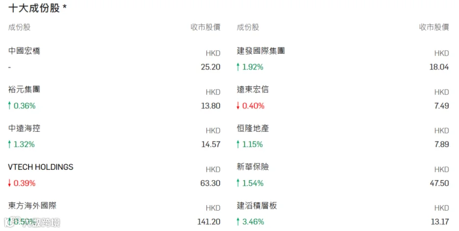 成立于2012年2月15日,由平安资管(香港)管理,规模约52亿港元,为目前五只中规模最大者,跟踪中证香港红利指数。 选股条件: - 日均成交额与市值均居前50%,且成交额不低于5000万港元; - 连续三年派息; - 按三年平均现金股息率排序,选取前30只股票。 行业集中于金融、能源和通讯板块。