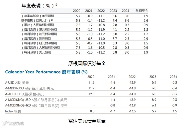 如摩根国际债券基金、富达美元债券基金,均以投资级美元债为主,富达产品中美国国债占比较高。近两年年化收益约为数个百分点。