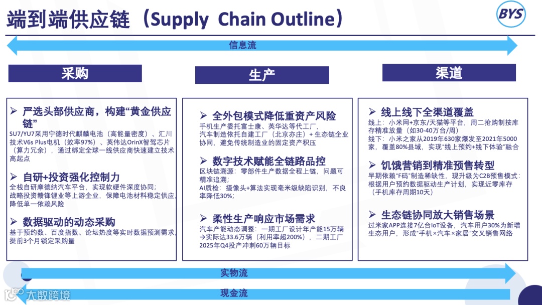 供应链管理上,小米显著优化账期政策:将传统车企180天至1年的付款周期缩短至60天内,核心供应商甚至实现“零账期”,增强合作黏性。同时推行VMI(供应商管理库存)中央仓模式,在亦庄建立72小时JIT配送体系,库存周转率提升至18次/年,大幅提高响应效率与灵活性。