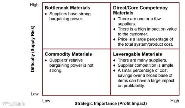 品类策略依据战略重要性与供应难度划分为四类:瓶颈型、核心型、杠杆型与商品型。例如碳化硅芯片依赖进口,受地缘政治影响大,属“瓶颈型”物料,小米通过多元化采购、战略储备与技术合作降低断供风险。