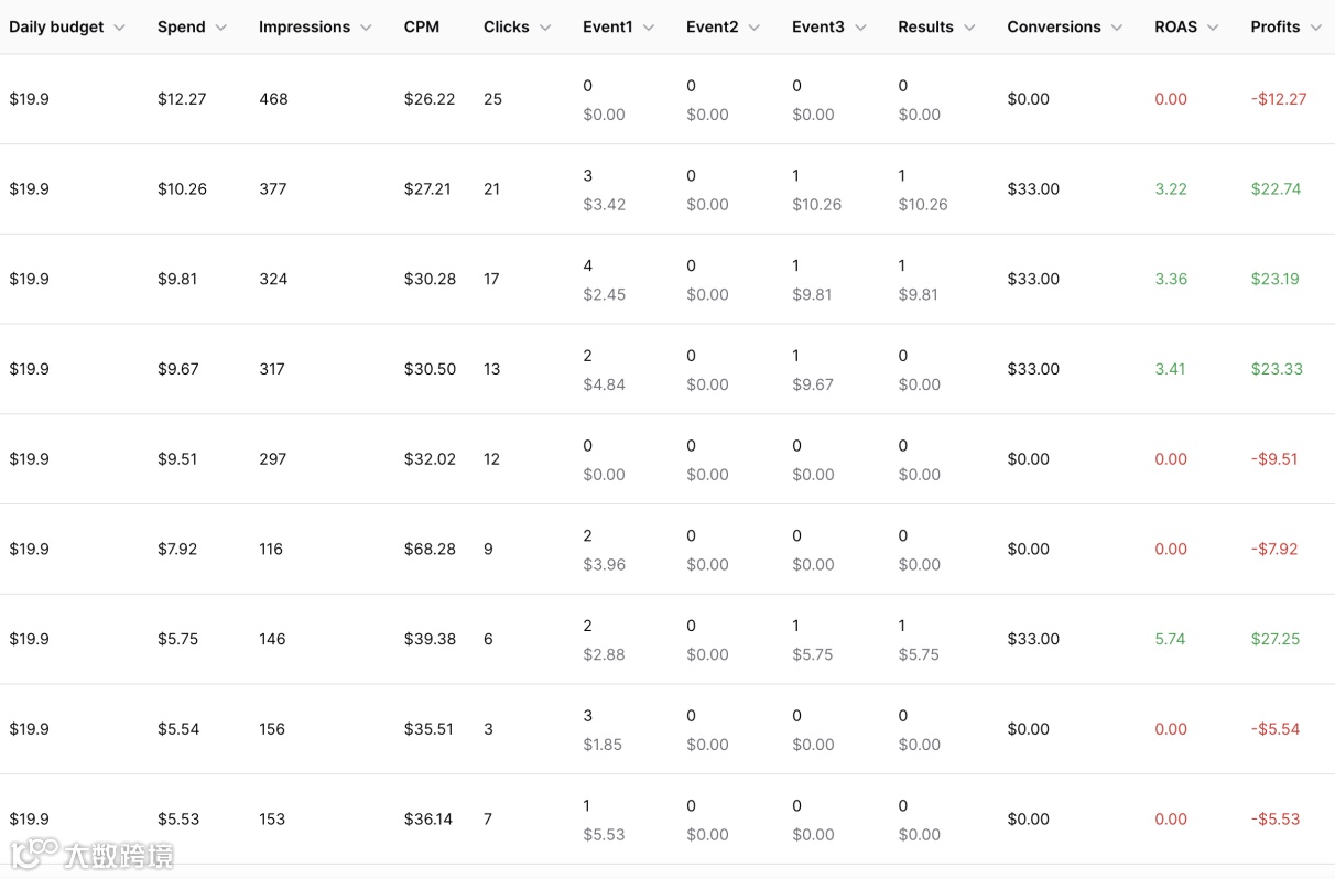 (以 ROAS 0.5 为界限,允许亏损为一个日预算)