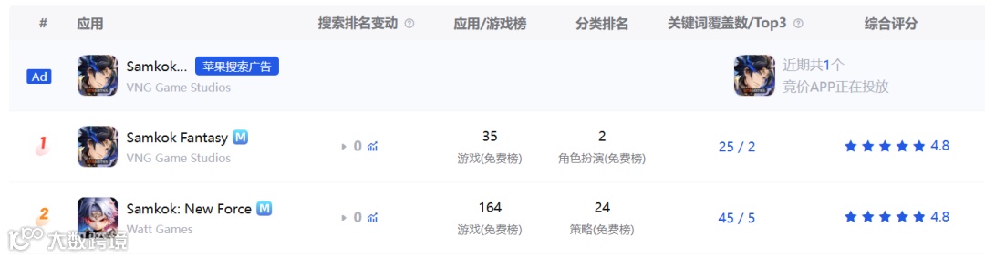Samkok冲进游戏榜Top5,ASO优化策略全解析