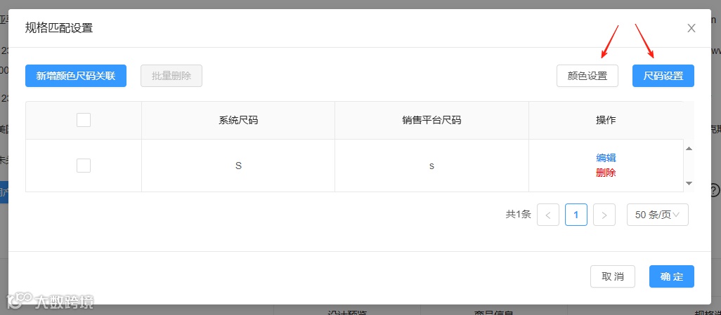 通过【去设置】或【规格匹配设置】入口,可配置颜色与尺码的多平台对应规则。