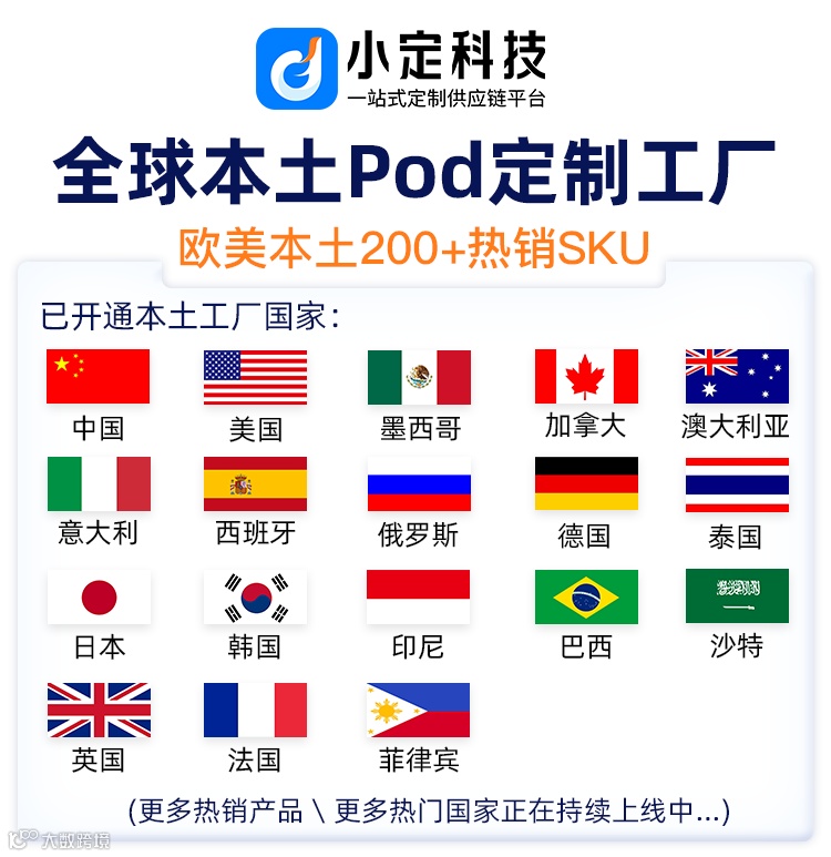 传统备货模式面临关税、库存与物流多重挑战,而POD“先下单后生产”的特性,有效规避库存风险,成为跨境卖家突围的关键路径。S2BDIY依托全球100+工厂网络,覆盖欧洲、美洲、亚洲、东南亚、澳洲、中东等地区,实现“订单在哪、生产在哪”的本地化生产与交付,显著缩短物流周期、降低运输成本,构建从设计到履约的完整闭环生态。