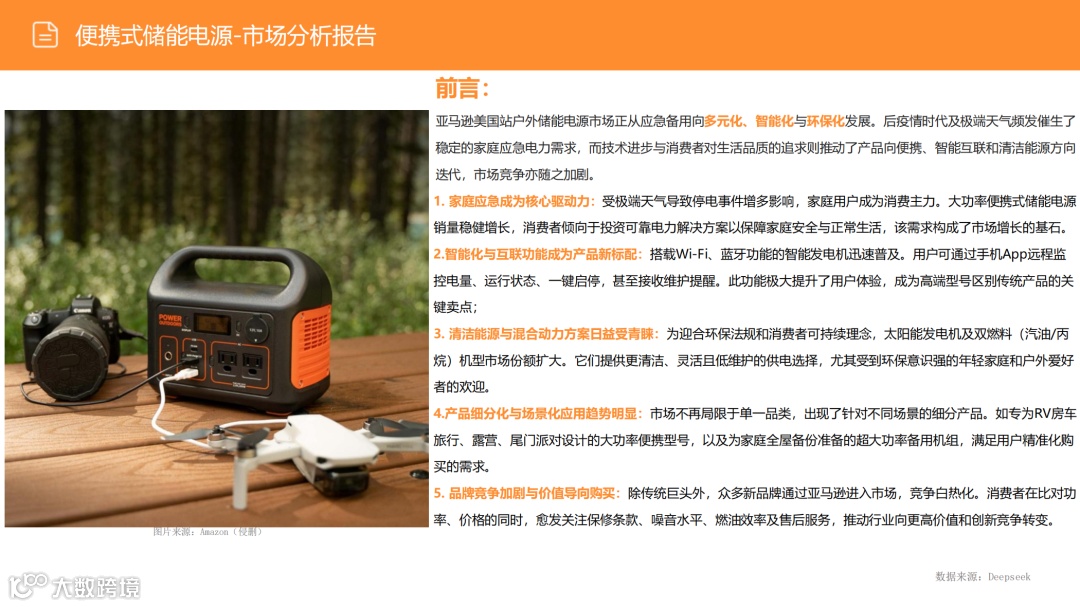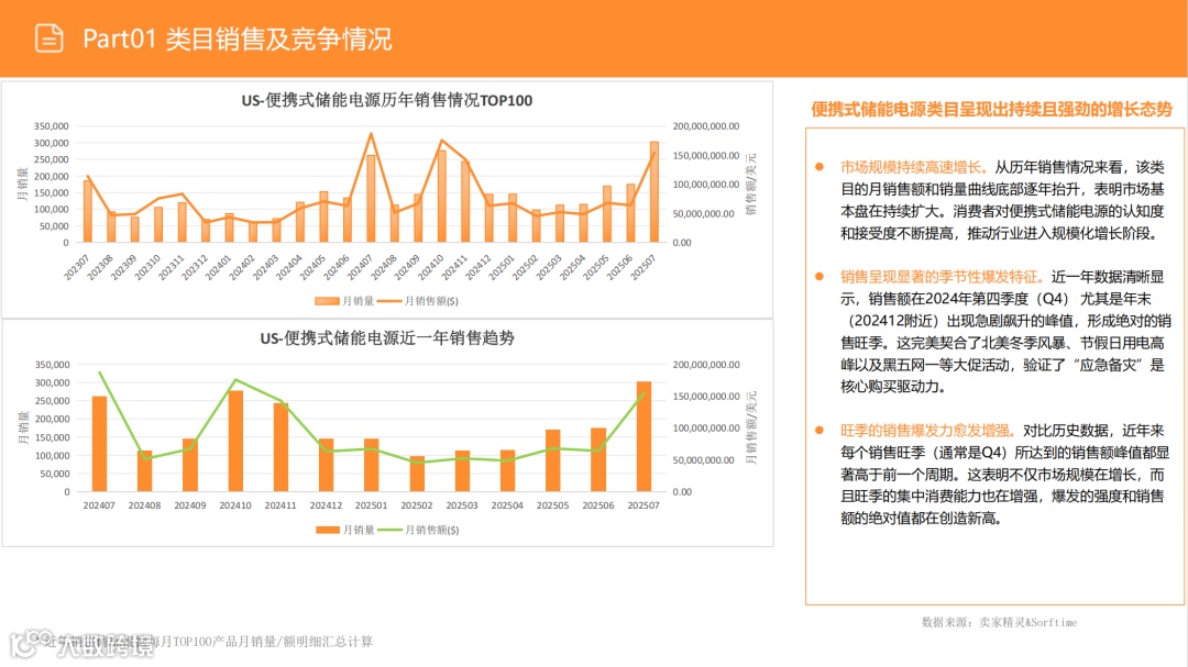 全球能源转型与户外休闲消费升级正共同推动便携式储能电源(PPS)市场进入爆发期。数据显示,仅亚马逊美国站该类目TOP100产品年销售额已突破数亿美元,增长势头强劲。本报告聚焦北美核心市场,深入剖析竞争格局、消费者需求及政策环境,为中国品牌出海提供关键决策依据。