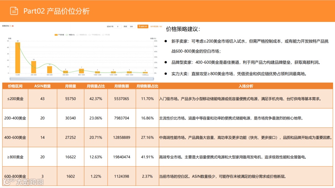 家庭备电是核心高价值需求(占搜索动机47%),用户对价格敏感度低,客单价高($800以上产品贡献41.91%销售额)。建议开发支持并联扩容、具备市电旁路(UPS功能)及多接口的机型,满足冰箱、医疗设备(如CPAP)等关键设备供电需求,最大化利润空间。 -