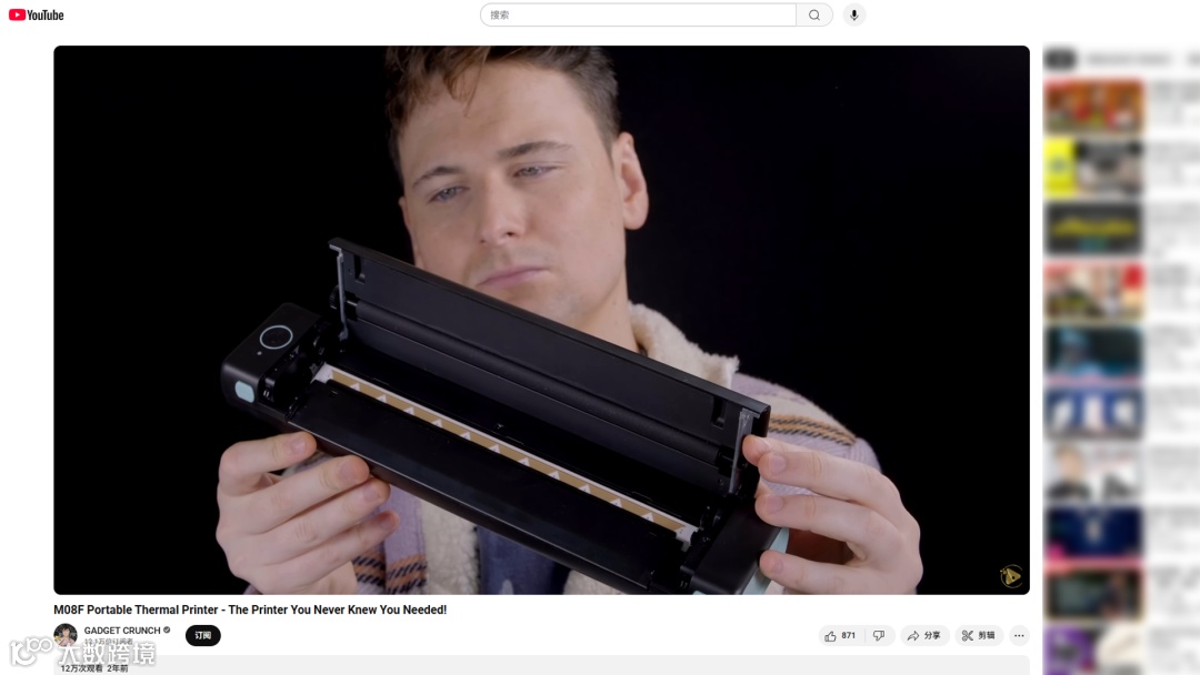 合作视频中,GadgetCrunch评测了M08F便携热敏打印机,突出其小巧便携、无需墨水、支持蓝牙连接的特点,展示了打印机在学生、办公室工作人员和手账爱好者日常使用中的便利性,强调操作简便、使用成本低,让用户直观了解产品性能和适用场景。