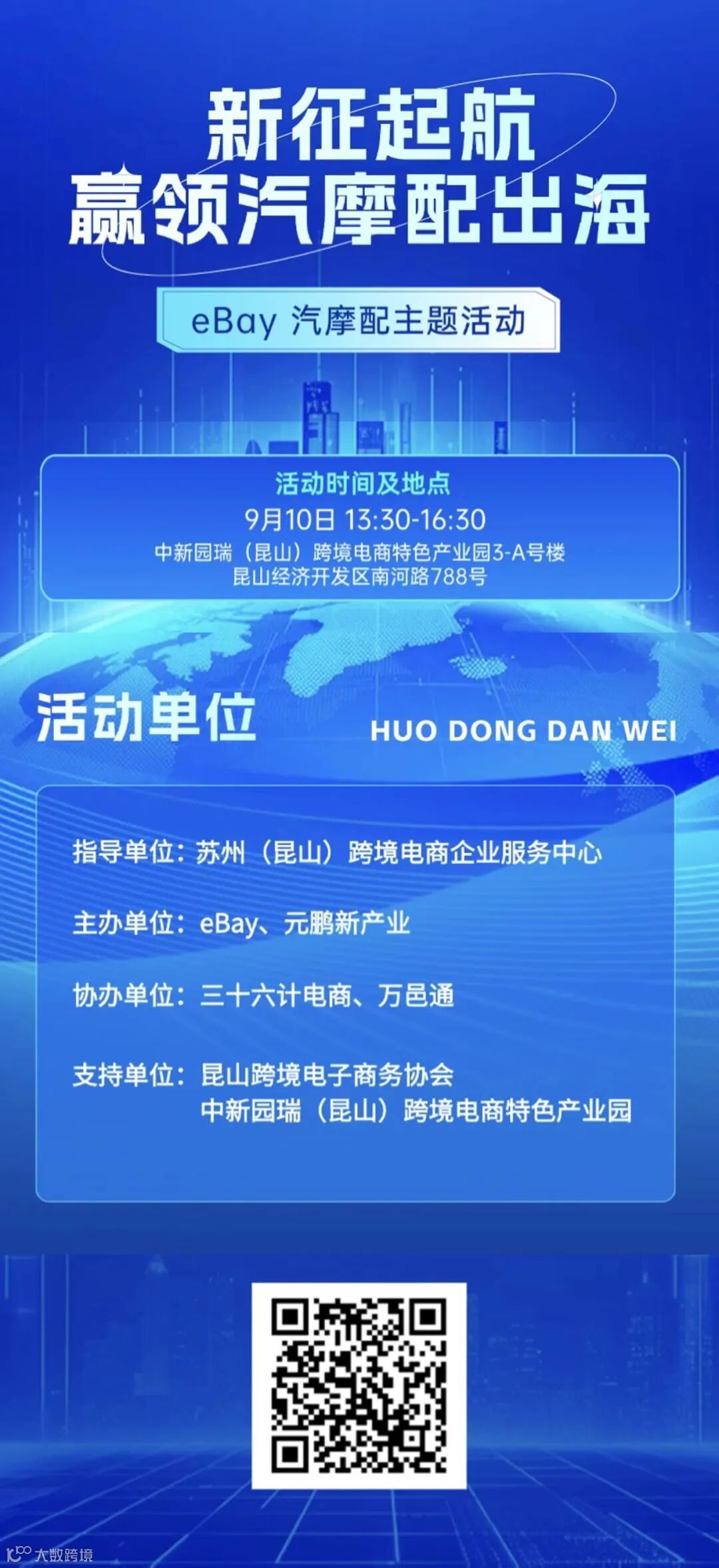 9月10日,“新征起航·赢领汽摩配出海”eBay汽摩配主题活动来了!