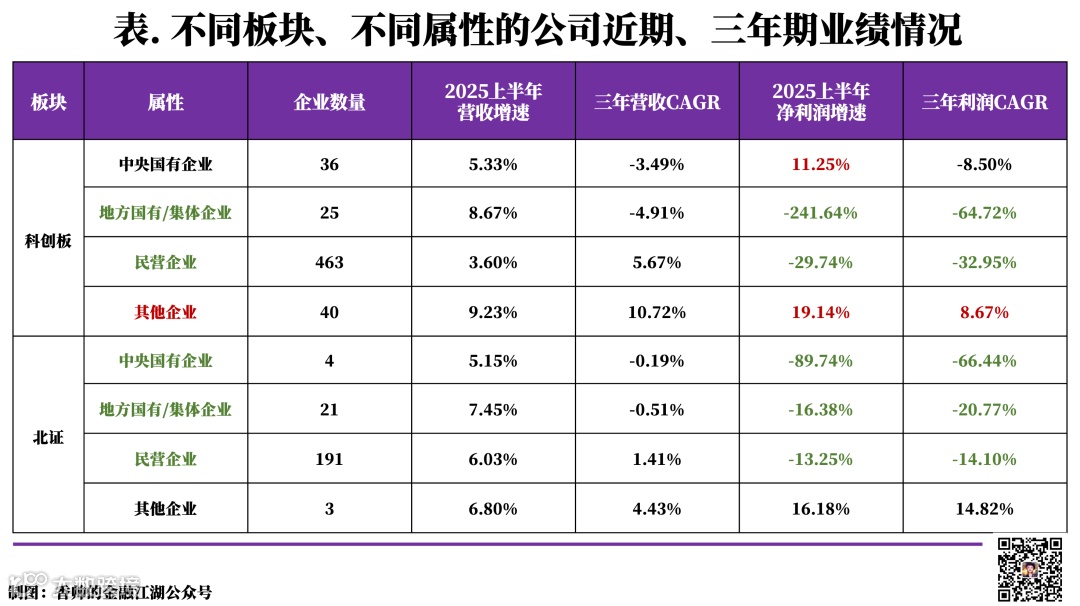 分板块与所有制看,主板民营企业、外资等其他企业、创业板及科创板的央企和地方国企普遍出现“触底反弹”,同比增速接近或超过10%。创业板民营企业及主板、科创板、北交所的其他企业表现稳健。但科创板和创业板的地方国企与民营企业业绩仍在持续下滑,整体承压。