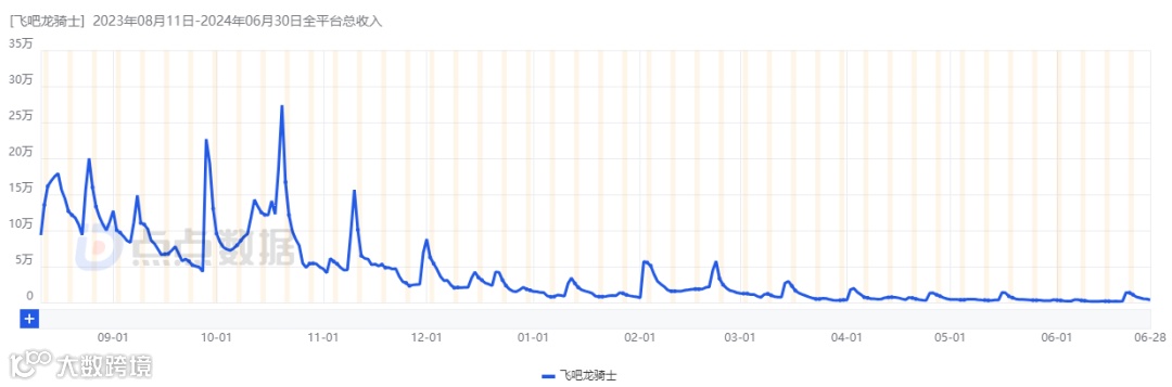 纵观《飞吧龙骑士》在不同市场的表现可以发现,其在繁体中文以及东南亚的表现最为强劲,其次是中国大陆,再者是欧美市场,日本市场短期不如上述市场,但还需要观察。此外,该作在所有市场流水的高峰期基本维持在三个月左右,长期表现均不够乐观。
