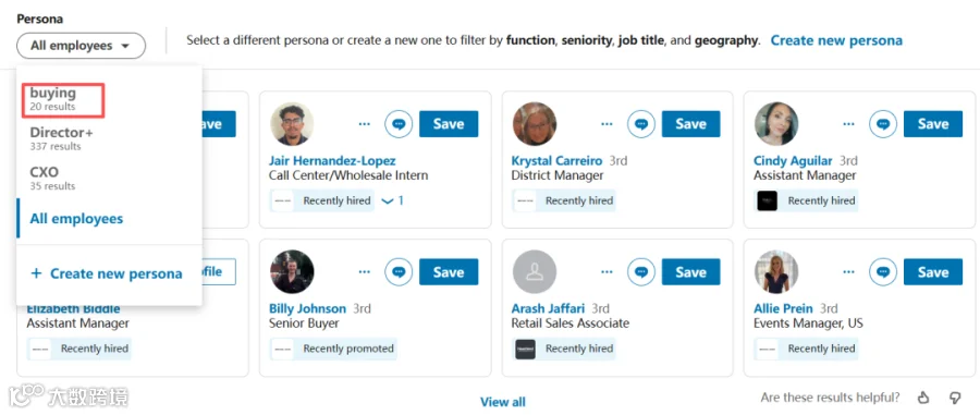 系统会让你选择你需要的客户群体,例如 buyer, sourcing manager, purchasing director。